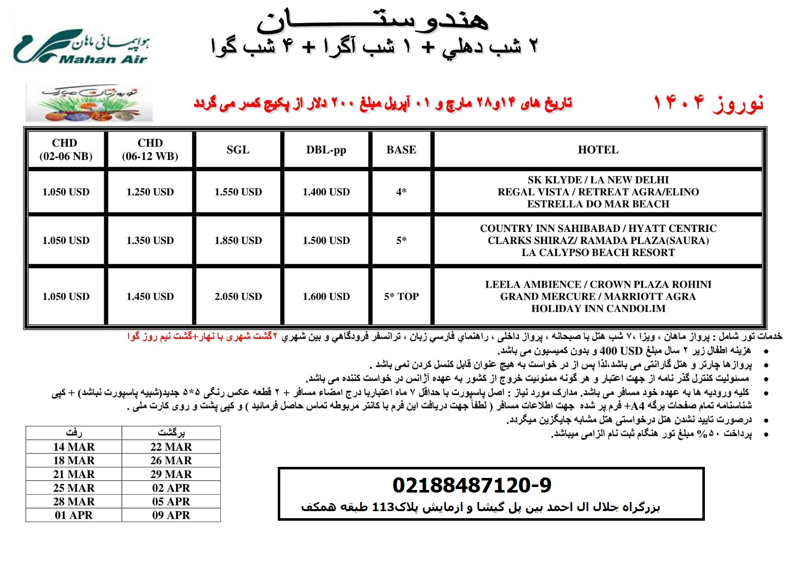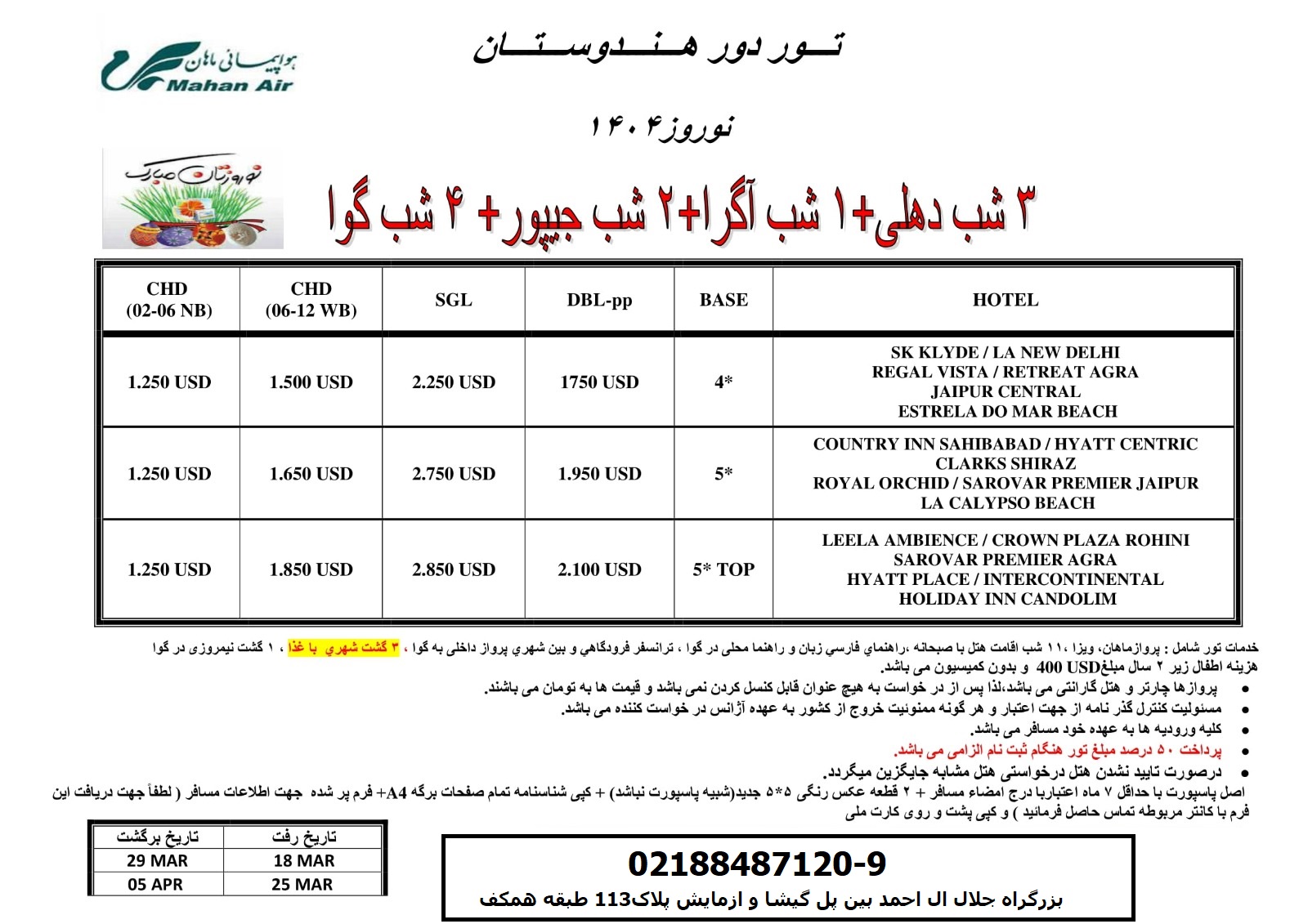 آژانس مسافرتی به عنوان مجری اصلی تورهای پاییزه هند در ایران، برای شما که در شهرهای دیگری جز تهران سکونت داری، خدمات رزرو و فروش تلفنی را فراهم کرده است تا بتوانی بدون رفت و آمد، این تور را رزرو کنی. (البته یک روز را برای انگشت نگاری باید به سفارت هند در تهران مراجعه نمایی).